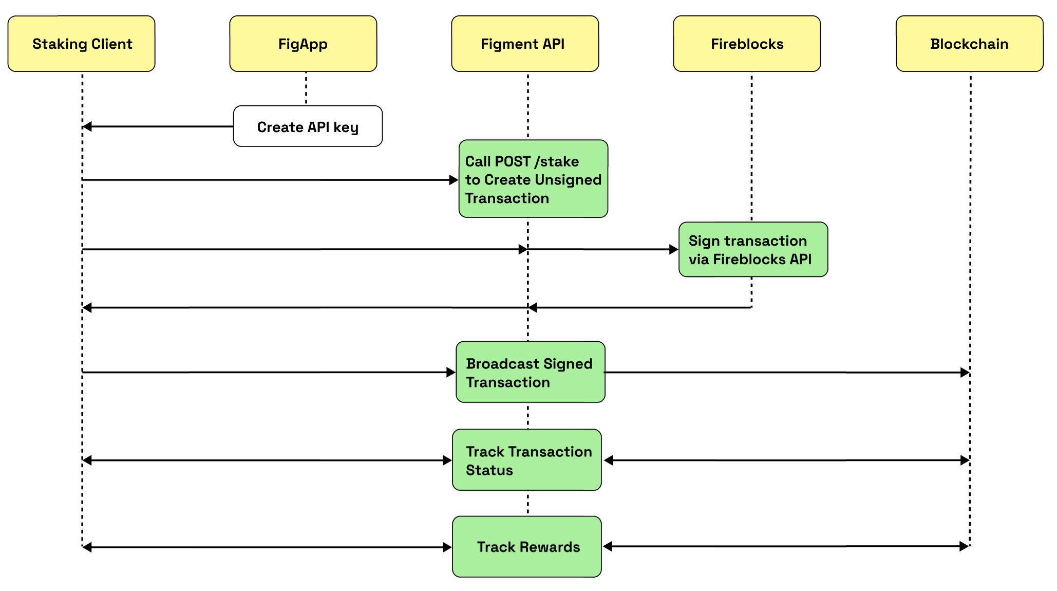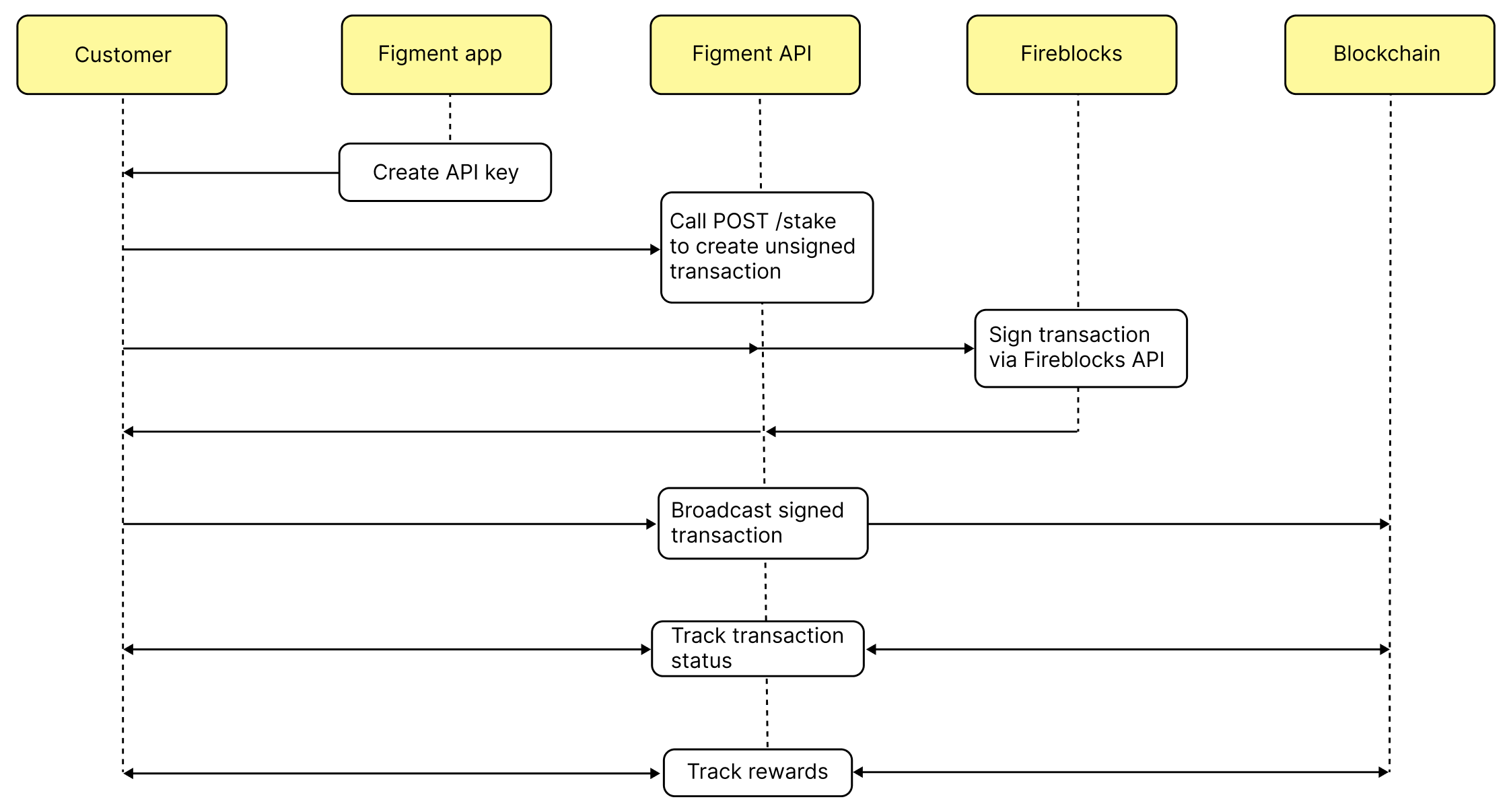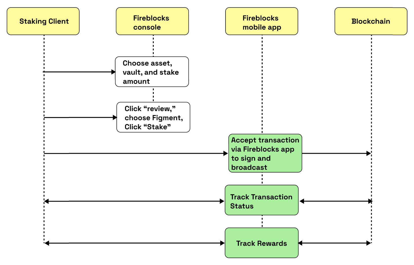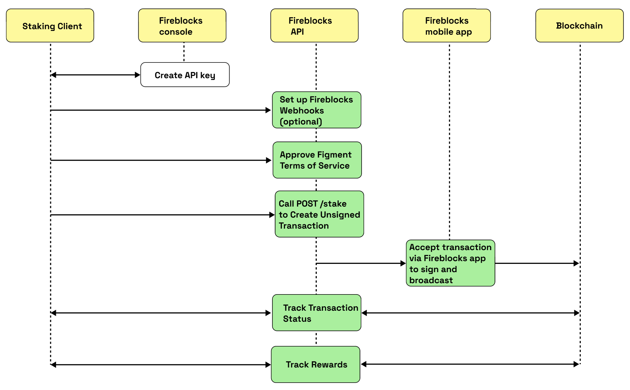 NOTE: Staking from Fireblocks for any network mutually supported by Figment and Fireblocks is possible via Fireblocks Raw Signing. Please reach out to us at [email protected] with interest